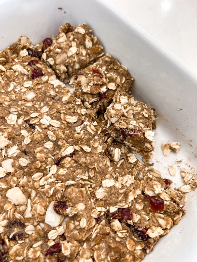 - Measure out 1/2 cup of oats and toss them into the pan with the seasoned apples.