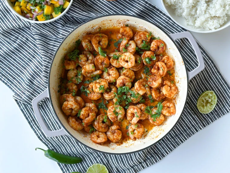 Whether you’re looking for an easy shrimp dinner to spice up your weekly meal rotation or a go-to recipe to impress your girls on a casual weeknight hangout, this one’s a winner. It’s healthy-ish, bold in flavor, and 100% customizable—pile it onto rice, stuff it in tacos, or keep it low-carb with cauliflower rice. You do you.