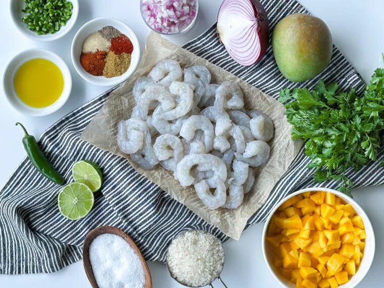 - 2 large mangos, peeled and diced – Sweet, juicy, and the perfect contrast to the spicy shrimp.