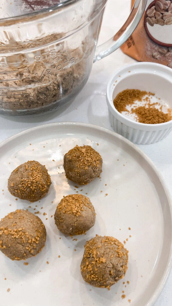 Using your hands or a small cookie scoop, portion the dough into balls about 1 inch in diameter. You should get around 12-15 energy balls, depending on the size.
